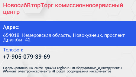 НовосибВторТорг, комиссионносервисный центр по адресу 654018, Кемеровская область, Новокузнецк, проспект Дружбы, 42 в дальнейшем Организация, размещена в следующих категориях: