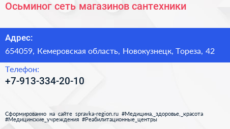 Осьминог, сеть магазинов сантехники по адресу 654059, Кемеровская область, Новокузнецк, Тореза, 42 в дальнейшем Организация, размещена в следующих категориях: