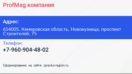 ProfMag, компания по адресу 654005, Кемеровская область, Новокузнецк, проспект Строителей, 75 в дальнейшем Организация, размещена в следующих категориях: