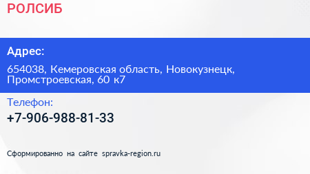 РОЛСИБ по адресу 654038, Кемеровская область, Новокузнецк, Промстроевская, 60 к7 в дальнейшем Организация, размещена в следующих категориях: