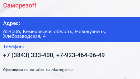 Саморезoff по адресу 654006, Кемеровская область, Новокузнецк, Хлебозаводская, 4 в дальнейшем Организация, размещена в следующих категориях: