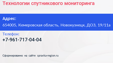Технологии спутникового мониторинга по адресу 654005, Кемеровская область, Новокузнецк, ДОЗ, 19/11а в дальнейшем Организация, размещена в следующих категориях: