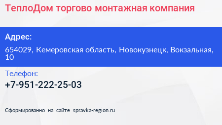 ТеплоДом, торгово-монтажная компания по адресу 654029, Кемеровская область, Новокузнецк, Вокзальная, 10 в дальнейшем Организация, размещена в следующих категориях: