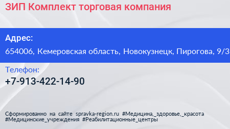 ЗИП Комплект, торговая компания по адресу 654006, Кемеровская область, Новокузнецк, Пирогова, 9/3 в дальнейшем Организация, размещена в следующих категориях: