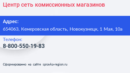 Центр, сеть комиссионных магазинов по адресу 654063, Кемеровская область, Новокузнецк, 1 Мая, 10а в дальнейшем Организация, размещена в следующих категориях: