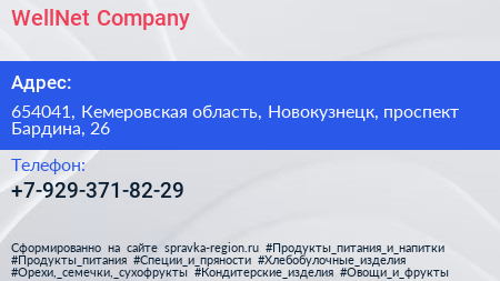 WellNet Company по адресу 654041, Кемеровская область, Новокузнецк, проспект Бардина, 26 в дальнейшем Организация, размещена в следующих категориях: