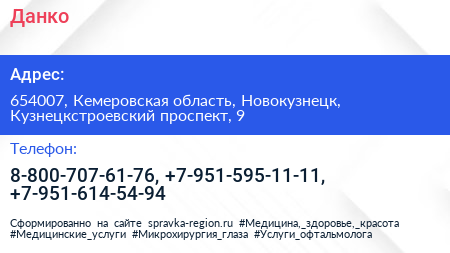 Данко по адресу 654007, Кемеровская область, Новокузнецк, Кузнецкстроевский проспект, 9 в дальнейшем Организация, размещена в следующих категориях: