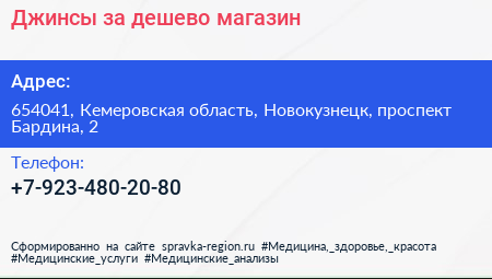 Джинсы за дешево, магазин по адресу 654041, Кемеровская область, Новокузнецк, проспект Бардина, 2 в дальнейшем Организация, размещена в следующих категориях: