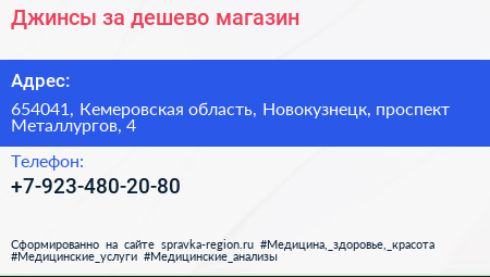 Джинсы за дешево, магазин по адресу 654041, Кемеровская область, Новокузнецк, проспект Металлургов, 4 в дальнейшем Организация, размещена в следующих категориях: