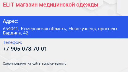 ELIT, магазин медицинской одежды по адресу 654041, Кемеровская область, Новокузнецк, проспект Бардина, 42 в дальнейшем Организация, размещена в следующих категориях: