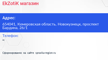 EkZotiK, магазин по адресу 654041, Кемеровская область, Новокузнецк, проспект Бардина, 26/1 в дальнейшем Организация, размещена в следующих категориях: