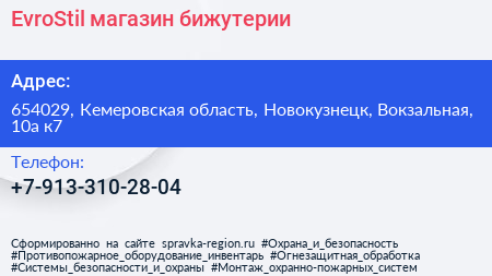EvroStil, магазин бижутерии по адресу 654029, Кемеровская область, Новокузнецк, Вокзальная, 10а к7 в дальнейшем Организация, размещена в следующих категориях: