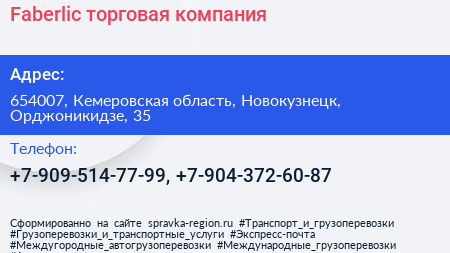 Faberlic, торговая компания по адресу 654007, Кемеровская область, Новокузнецк, Орджоникидзе, 35 в дальнейшем Организация, размещена в следующих категориях: