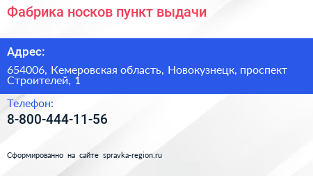 Фабрика носков, пункт выдачи по адресу 654006, Кемеровская область, Новокузнецк, проспект Строителей, 1 в дальнейшем Организация, размещена в следующих категориях: