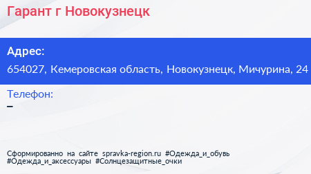 Гарант, г. Новокузнецк по адресу 654027, Кемеровская область, Новокузнецк, Мичурина, 24 в дальнейшем Организация, размещена в следующих категориях:
