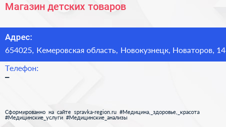 Магазин детских товаров по адресу 654025, Кемеровская область, Новокузнецк, Новаторов, 14 в дальнейшем Организация, размещена в следующих категориях:
