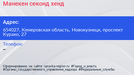 Манекен, секонд-хенд по адресу 654027, Кемеровская область, Новокузнецк, проспект Курако, 27 в дальнейшем Организация, размещена в следующих категориях: