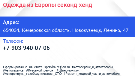 Одежда из Европы, секонд-хенд по адресу 654034, Кемеровская область, Новокузнецк, Ленина, 47 в дальнейшем Организация, размещена в следующих категориях: