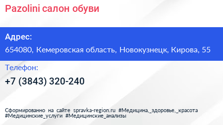 Pazolini, салон обуви по адресу 654080, Кемеровская область, Новокузнецк, Кирова, 55 в дальнейшем Организация, размещена в следующих категориях: