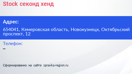 Stock, секонд-хенд по адресу 654041, Кемеровская область, Новокузнецк, Октябрьский проспект, 12 в дальнейшем Организация, размещена в следующих категориях: