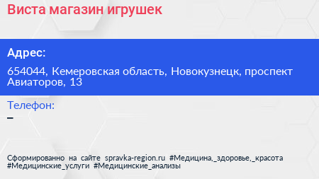 Виста, магазин игрушек по адресу 654044, Кемеровская область, Новокузнецк, проспект Авиаторов, 13 в дальнейшем Организация, размещена в следующих категориях:
