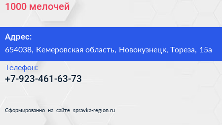 1000 мелочей по адресу 654038, Кемеровская область, Новокузнецк, Тореза, 15а в дальнейшем Организация, размещена в следующих категориях:
