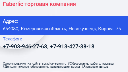 Faberlic, торговая компания по адресу 654080, Кемеровская область, Новокузнецк, Кирова, 75 в дальнейшем Организация, размещена в следующих категориях: