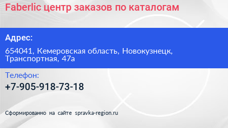 Faberlic, центр заказов по каталогам по адресу 654041, Кемеровская область, Новокузнецк, Транспортная, 47а в дальнейшем Организация, размещена в следующих категориях: