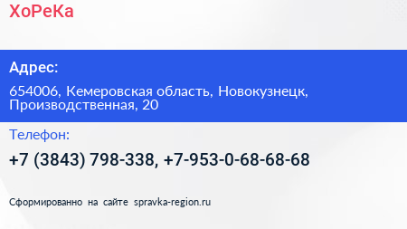 ХоРеКа по адресу 654006, Кемеровская область, Новокузнецк, Производственная, 20 в дальнейшем Организация, размещена в следующих категориях: