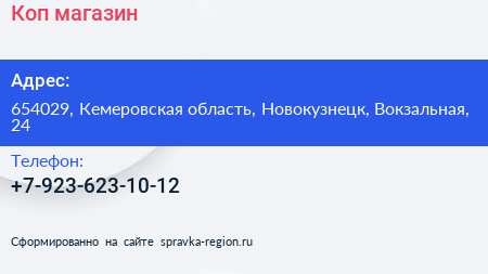 Коп, магазин по адресу 654029, Кемеровская область, Новокузнецк, Вокзальная, 24 в дальнейшем Организация, размещена в следующих категориях: