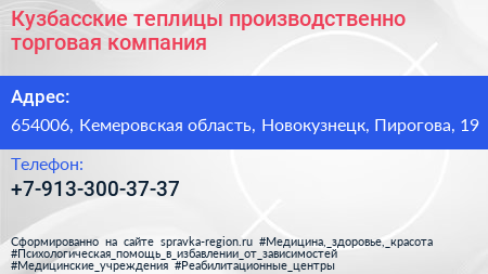 Кузбасские теплицы, производственно-торговая компания по адресу 654006, Кемеровская область, Новокузнецк, Пирогова, 19 в дальнейшем Организация, размещена в следующих категориях: