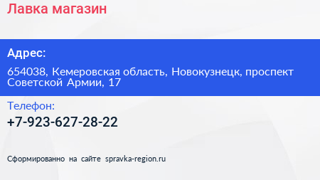 Лавка, магазин по адресу 654038, Кемеровская область, Новокузнецк, проспект Советской Армии, 17 в дальнейшем Организация, размещена в следующих категориях: