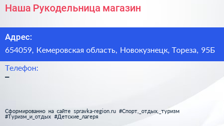 Наша Рукодельница, магазин по адресу 654059, Кемеровская область, Новокузнецк, Тореза, 95Б в дальнейшем Организация, размещена в следующих категориях: