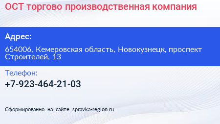 ОСТ, торгово-производственная компания по адресу 654006, Кемеровская область, Новокузнецк, проспект Строителей, 13 в дальнейшем Организация, размещена в следующих категориях: