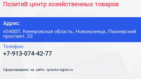 ПозитиВ, центр хозяйственных товаров по адресу 654007, Кемеровская область, Новокузнецк, Пионерский проспект, 23 в дальнейшем Организация, размещена в следующих категориях: