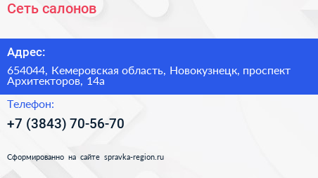 Сеть салонов по адресу 654044, Кемеровская область, Новокузнецк, проспект Архитекторов, 14а в дальнейшем Организация, размещена в следующих категориях: