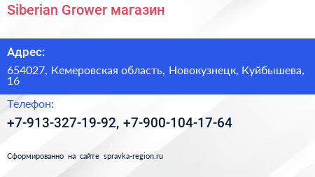 Siberian-Grower, магазин по адресу 654027, Кемеровская область, Новокузнецк, Куйбышева, 16 в дальнейшем Организация, размещена в следующих категориях: