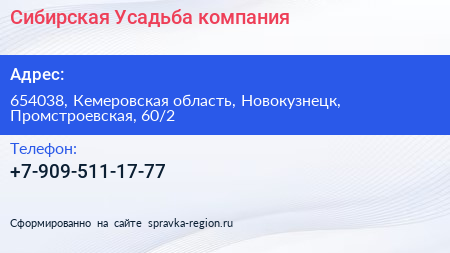 Сибирская Усадьба, компания по адресу 654038, Кемеровская область, Новокузнецк, Промстроевская, 60/2 в дальнейшем Организация, размещена в следующих категориях:
