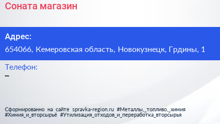 Соната, магазин по адресу 654066, Кемеровская область, Новокузнецк, Грдины, 1 в дальнейшем Организация, размещена в следующих категориях: