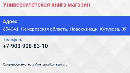 Университетская книга, магазин по адресу 654041, Кемеровская область, Новокузнецк, Кутузова, 39 в дальнейшем Организация, размещена в следующих категориях: