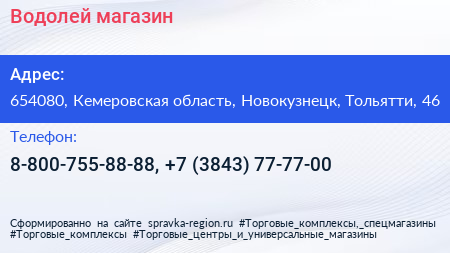 Водолей, магазин по адресу 654080, Кемеровская область, Новокузнецк, Тольятти, 46 в дальнейшем Организация, размещена в следующих категориях:
