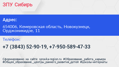 ЗПУ-Сибирь по адресу 654006, Кемеровская область, Новокузнецк, Орджоникидзе, 11 в дальнейшем Организация, размещена в следующих категориях: