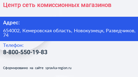 Центр, сеть комиссионных магазинов по адресу 654002, Кемеровская область, Новокузнецк, Разведчиков, 74 в дальнейшем Организация, размещена в следующих категориях: