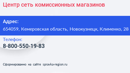 Центр, сеть комиссионных магазинов по адресу 654059, Кемеровская область, Новокузнецк, Клименко, 28 в дальнейшем Организация, размещена в следующих категориях: