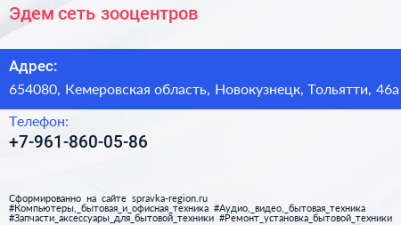 Эдем, сеть зооцентров по адресу 654080, Кемеровская область, Новокузнецк, Тольятти, 46а в дальнейшем Организация, размещена в следующих категориях: