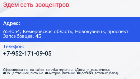 Эдем, сеть зооцентров по адресу 654054, Кемеровская область, Новокузнецк, проспект Запсибовцев, 4Б в дальнейшем Организация, размещена в следующих категориях: