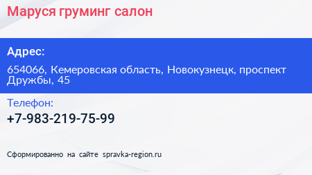 Маруся, груминг-салон по адресу 654066, Кемеровская область, Новокузнецк, проспект Дружбы, 45 в дальнейшем Организация, размещена в следующих категориях: