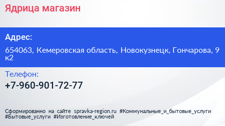 Адрес: Кемеровская область, Новокузнецк, Переездная, 7/2