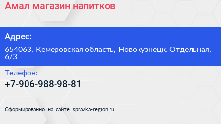 Амал, магазин напитков по адресу 654063, Кемеровская область, Новокузнецк, Отдельная, 6/3 в дальнейшем Организация, размещена в следующих категориях: