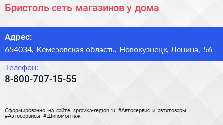 Бристоль, сеть магазинов у дома по адресу 654034, Кемеровская область, Новокузнецк, Ленина, 56 в дальнейшем Организация, размещена в следующих категориях: